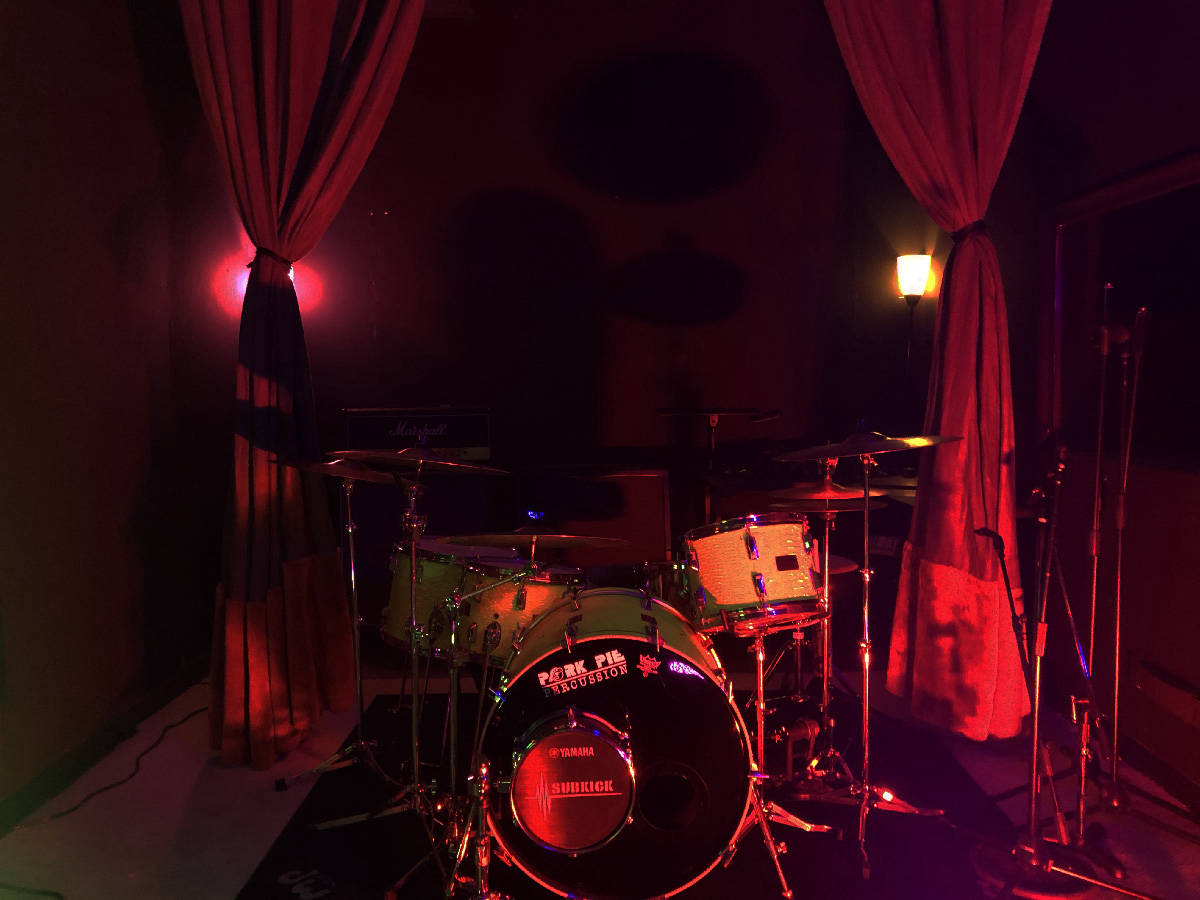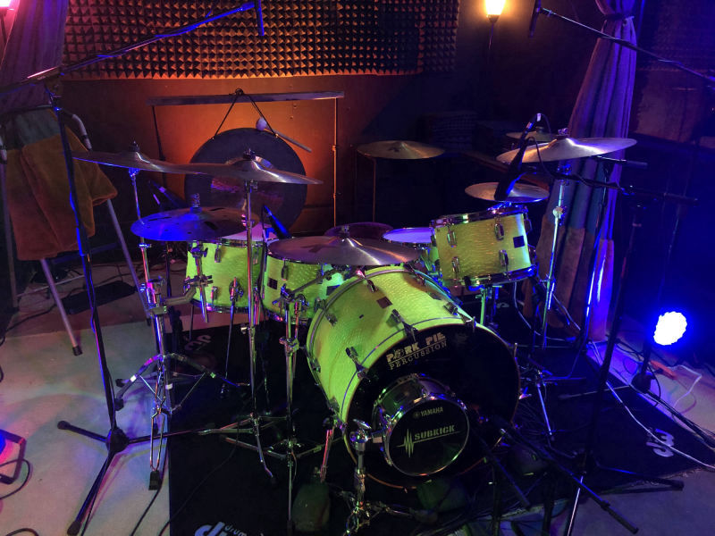 Save time and get amazing sounds with our house Pork Pie kit all dialed in waiting for you. Great cymbals and even a 36" Dark Star Gong