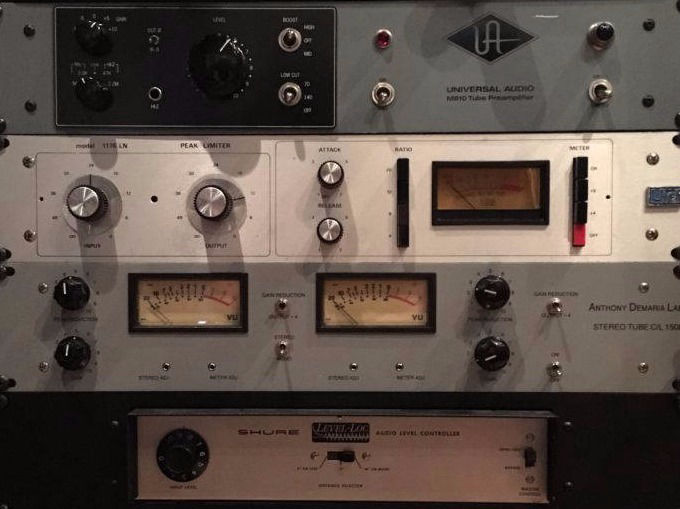 Preamps and Compressors: UA M610, API 512 (2), Neve 1073 lb, Neve 88R lb, Focusrite ISA One (2), Focusrite Octopre, Golden Audio Pre-73 (2), DBX 376 Tube Channel Strip, Urei 1176 Silverface Compressor, Anthony Demaria Labs Stereo Tube Compressor , DBX 160A Compressor’s (2)